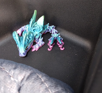 I adopted a baby dragon. I found her at our farmers market. Amelia's (Cabinet Mountain Creations) son made these. She is very shy and very flexable. She has an iridescent shine to her. Now...what should I name her.